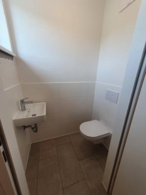 Im Badezimmer ist ein WC vorhanden und generell zeichnet es sich durch einen neuzeitlichen Stil aus. Ein weiteres WC ist vom Vorraum aus separat begehbar.